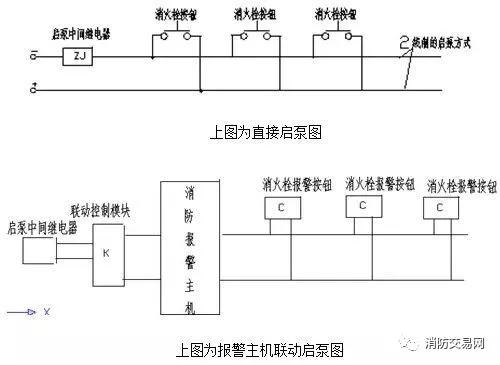 消火栓按钮启动消防泵组分为直接启动消防泵和间接启动消防泵,原先许多工程因规范要求不明确,部分采用消火栓按钮间接启动消防泵的控制方式;消火栓启泵按钮从接线方式分两种,为消火栓按钮并联接线启动消防泵和按钮串联接线启东消防泵。